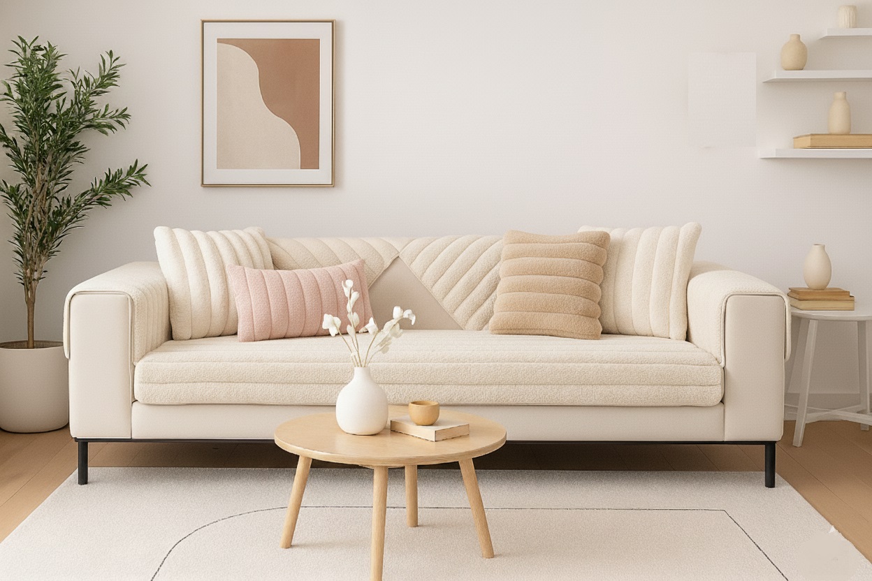 Com tecido de pelúcia sintética premium e textura ondulada 3D, ele transforma o visual do sofá enquanto protege contra pelos, arranhões e desgaste natural.